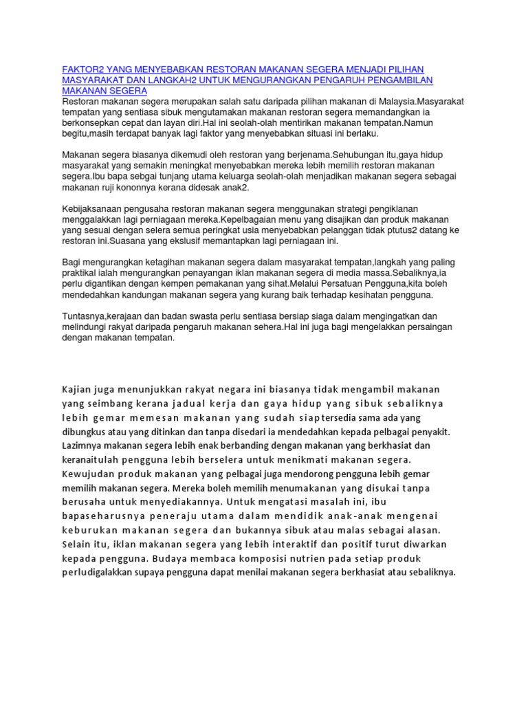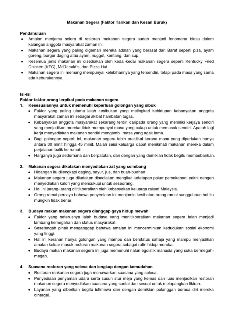 Makanan Segera Faktor Tarikan Dan Kesan Buruk Pdf